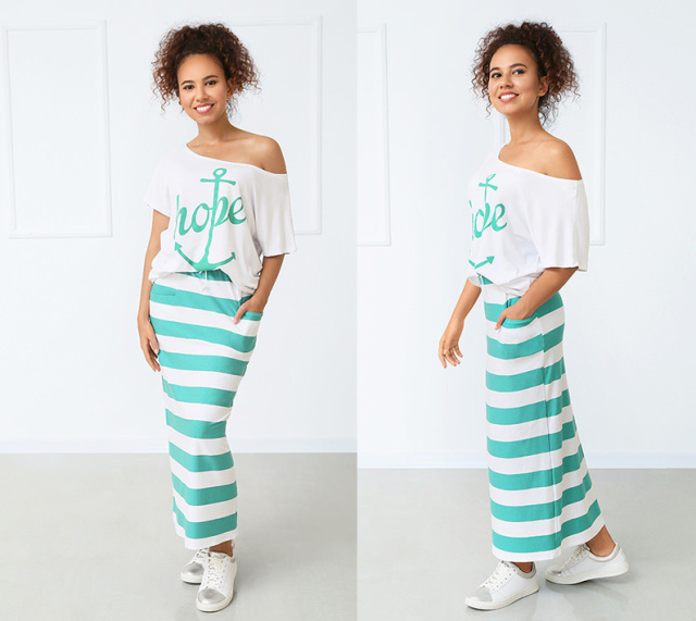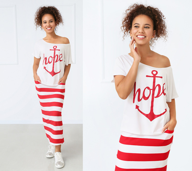 Літній костюм з якорем "Maritime" Роздріб (не дропшипінг) – 395 грн Збираєтеся у відпустку до моря і бажаєте оновити свій гардероб? Ми все передбачили і подбали про ваш стильний образ! Зверніть увагу на цей яскравий літній костюм у морському стилі. Адже це ідеальне вбрання для морських прогулянок, запальних вечірок біля басейну, а також для комфортної щоденної носки. Літній костюм складається з футболки "oversize" і довгої спідниці з кишенями. Завдяки вільному крою і широкому вирізу горловини, футболку можна носити із напуском на одне плече. Спідниця максі має зручну високу посадку, широкий пояс на резинці і шнурку. З боків є дві функціональні кишені. Особливого морського шарму надають аплікація великого якоря на однотонній футболці і принт спідниці в широку смужку. Одночасно модний та комфортний наряд виготовлений із м'якої трикотажної тканини. Костюм досить практичний для щоденної експлуатації, оскільки віскоза володіє наступними властивостями: - високою гігроскопічністю; - добре пропускає повітря; - має м'яку і приємну на дотик текстуру; - дозволяє шкірі дихати; - не електризується. Придбати літній костюм в морському стилі можна в трьох соковитих кольорах. Якщо вже визначилися з кольором і розміром, тисніть на кнопку "Купити". Ми гарантуємо високу якість нашої продукції і приємний сервіс! Характеристики Стиль:Молодіжний Сезон:Літо Довжина футболки по спинці:52-56 см Довжина спідниці:88 см Матеріал:Віскоза Наявність на складі Колір 42-44 46-48 50-52 Електрик ✗ ✗ ✗ Червоний ✓ ✓ ✓ Зелений ✓ ✓ ✗ ✓ — в наявності (кількість обмежена). ✗ — немає в наявності (знято з виробництва). Наші переваги Весь товар в наявності Відправка за 24 години 100% як на фото Найвигідніші ціни Обмін та повернення Гарантія якості