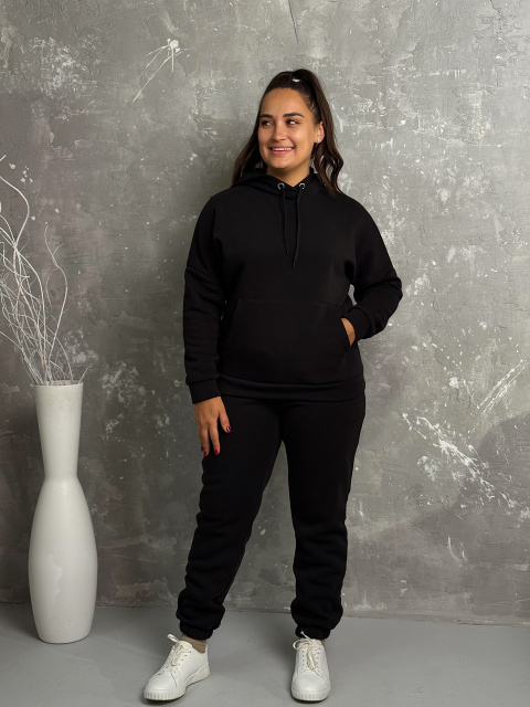 Жіночий утеплений спортивний костюм складається з модного худі і штанів-джогерів. Завдяки вільному крою, комплект ідеально сидить на фігурі будь-якої комплекції, приховує недоліки і не обмежує рухів.