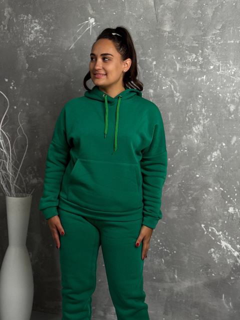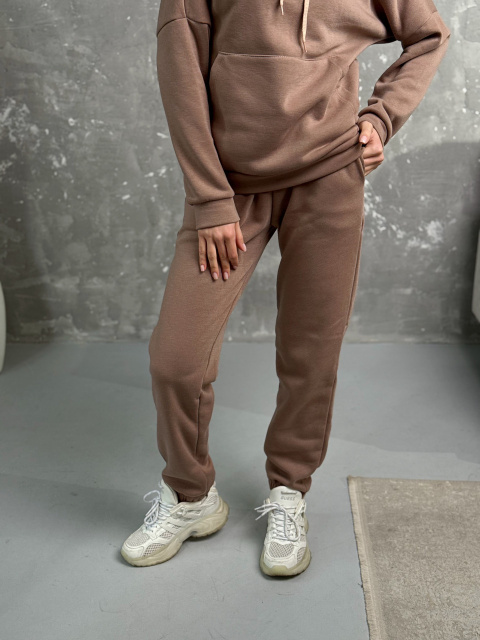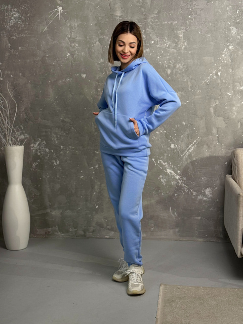 Стильний спортивний костюм оверсайз виготовлений зі щільного трикотажу тринитка. З вивороту матеріал утеплений м'яким флісом – начосом, який добре зберігає тепло під час носіння. Вироби з утепленого трикотажу приємні до тіла і не викликають дискомфорту при контакті зі шкірою. Костюм рекомендується прати в делікатному режимі за температури 30 градусів.