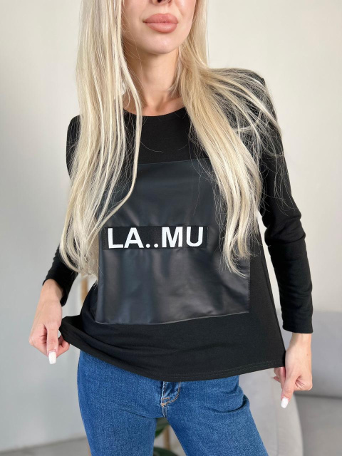 - спереду квадратна нашивка з матової екошкіри та декоративної стрічки з написом білого кольору.