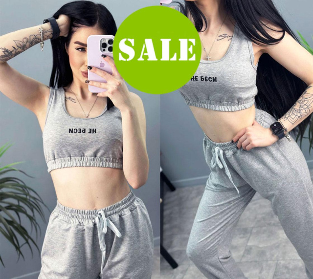 UA MarketВінницяGhjhgТовари та послугиСпортивные костюмы женские оптомЛегкий трикотажний костюм-двійка «Не беси» оптом | Розпродаж моделі