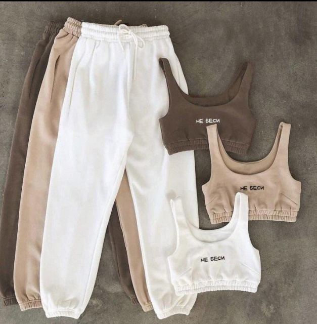 Трикотажний костюм-двійка "Не беси" Роздріб (не дропшипінг) – 465 грн Наша нова пропозиція буде особливо актуальною для зухвалих і сміливих дівчат, що володіють хорошим почуттям гумору. Адже погодьтеся, заявити всьому світу «не біси» наважиться не кожна. Зручний спортивний костюм з двох елементів змусить закохатися в нього з першого погляду. До легкого трикотажного костюма, який продається оптом, входять топік і спортивні джогери. Штани з кишенями і поясом на резинці відмінно сідають по фігурі. Вільний фасон і зручна посадка забезпечують комфортне носіння і не обмежують рухів. Топ з витачками на грудях і резинкою знизу дозволяє продемонструвати животик. Така коротка маєчка вигідно підкреслює сексуальність і жіночність фігури. На грудях розташована невелика накатка, яка витримує багаторазове прання, стійка до температур. Легкий спортивний костюм виготовлений із трикотажу двонитка. Матеріал зносостійкий і практичний в повсякденній експлуатації. Щоб довго зберігати свіжість кольору і форми виробу, рекомендуємо прання в делікатному режимі при температурі не вище 30 градусів. Робити покупки оптом дешевше, а робити покупки на приємно і вигідно! Наш магазин докладає максимум зусиль, щоб кожен клієнт залишався задоволений. Тому на нашому сайті є: - безліч моделей; - найвигідніші ціни; - максимально зручні умови співпраці; - повернення і обмін без проблем; - швидка відправка за 24 години. Характеристики Стиль:Спортивний Сезон:Літо Заміри моделі в 42-44р: Довжина топа (від плеча):33 см Довжина крокового шва:74 см Довжина бічного шва:100 см Матеріал:Двонитка Наявність на складі Колір 42-44 46-48 Чорний ✗ ✗ Сірий ✗ ✗ Бежевий ✗ ✓ Білий ✗ ✓ Капучино ✗ ✓ ✓ — в наявності (кількість обмежена). ✗ — немає в наявності (знято з виробництва). Наші переваги Весь товар в наявності Відправка за 24 години 100% як на фото Найвигідніші ціни Обмін та повернення Гарантія якості
