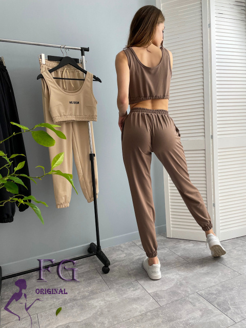 UA MarketВінницяGhjhgТовари та послугиСпортивные костюмы женские оптомЛегкий трикотажний костюм-двійка «Не беси» оптом | Розпродаж моделі Капучіно, 46-48