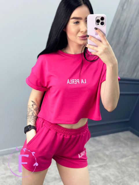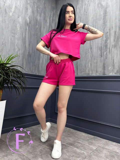 Жіночий костюм літній "La perla" Роздріб (не дропшипінг) – 415 грн Яскравий молодіжний спортивний костюм з шортами – ідеальний варіант для...