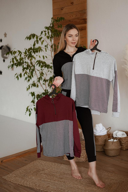 Трикотажний костюм "Flex" Роздріб (не дропшипінг) – 625 грн Одяг будь-якого стилю повинен бути не лише моднимі красивим, перш за все він повинен бути зручним. На завжди можна купити стильні та комфортні наряди на всі випадки життя. Безпрограшний варіант для повсякденного носіння – жіночий трикотажний костюм. Зручний фасон дає відчуття свободи і легкості, коли нічого не сковує рухів, не перетискає та не обтягує. Ця модель поєднала в собі вільний крій, стильний дизайн і гідну якість тканини. Верх костюма – кофта з капюшоном і довгими рукавами. На грудях присутня функціональна блискавка, з допомогою якої можна контролювати глибину декольте. Низ – укорочені штани з кишенями. Штанини з манжетами, злегка завужені до низу. Модель має комфортну посадку і пояс на резинці. Обидві деталі костюма декоровані контрастними вставками з принтом «гусяча лапка». Повсякденний костюм виготовлений з трикотажу двонитка, який володіє хорошими якостями і приємною текстурою. У догляді матеріал не примхливий, але вимагає дотримання низького температурного режиму при пранні. В наявності три базових актуальних забарвлення в різних розмірах. Якщо вам сподобався жіночий повсякденний костюм із трикотажу, не чекайте знаків від долі – сміливо тисніть на "Купити"! На правах виробника гарантуємо високу якість, вигідну вартість і швидку відправку! Характеристики Стиль:Casual Сезон:Весна/осінь Довжина по спинці:63 см Довжина рукава від горловини:70-74 см Довжина бічного шва штанів: 93-95 см Довжина крокового шва: 69-70 см м Матеріал:Двунитка Наявність на складі Колір 42-44 46-48 50-52 Чорний ✓ ✓ ✓ Сірий ✗ ✗ ✓ Марсала ✓ ✓ ✓ ✓ — в наявності (кількість не обмежена). ✗ — немає в наявності (знято з виробництва). АКЦІЇ ТА ЗНИЖКИ ПОДАРУНОК ПРИ КУПІВЛІ ВІД 3-Х ОДИНИЦЬ При купівлі від 3 од. будь-якого товару в одній посилці, не включаючи позицій з розпродажу та розділу "Все по 95" ДОДАТКОВА ЗНИЖКА При покупці від 25 од. будь-якого товару в одній посилці (акції не підсумовуються) Наші переваги Весь товар в наявності Відправка за 24 години 100% як на фото Найвигідніші ціни Обмін та повернення Гарантія якості