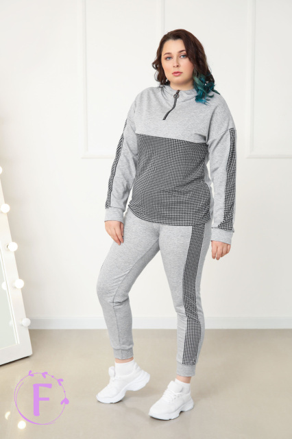 Повсякденний жіночий костюм із трикотажу «Flex» оптом | Норма і батал | Розпродаж моделі Сірий, 50-52