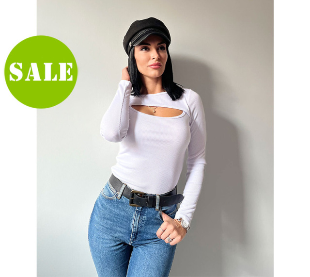 Трикотажна кофтинка з розрізом на грудях «Kiss» оптом I Норма і батал I Розпродаж моделі