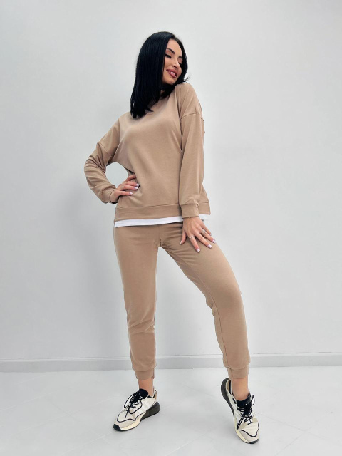 Трикотажний костюм-двійка «Spring» оптом | Норма | Розпродаж моделі 42-44, Капучіно