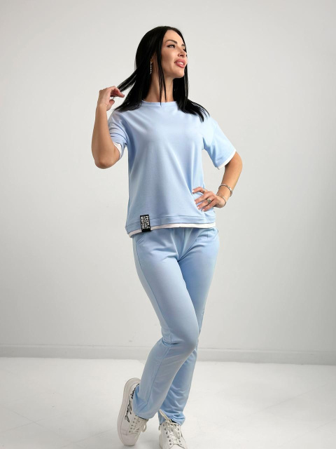 Трикотажний літній костюм пошитий із двонитки. Цей матеріал не тільки добре переносить прання та довго зберігає яскраві кольори, але й дуже приємний до тіла. Костюми з двонитки рекомендується прати за низької температури (30-40 градусів) і прасувати на мінімальному режимі.
