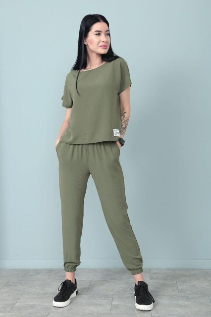 UA MarketВінницяGhjhgТовари та послугиСпортивные костюмы женские оптомЛітній костюм зі штанами на резинці «My day» оптом | Норма і батал Хакі, 42-44