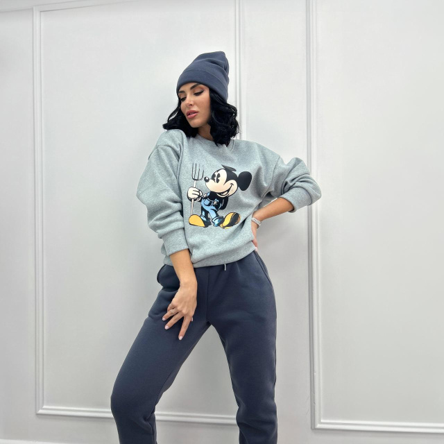 Двокольоровий спортивний костюм з шапкою «Minnie» оптом | Норма | Розпродаж моделі Графіт, 42-44