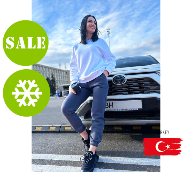 Цей затишний спортивний комплект включає світшот і штани з турецької тринитки на флісі, яка забезпечує тепло і комфорт.