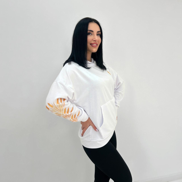 Демісезонний жіночий худі з принтом "Seed" Роздріб (не дропшипінг) – 455 грн Відкрийте для себе красу українських традицій з демісезонним худі "Seed" від Fashion Girl! Кожен виріб з принтом колосся – це дань поваги до безкінечної величі українських полів, запрошення носити історію з гордістю та елегантністю. Модель пошита з якісного трикотажу (двунитки) та ідеально підійде для весняно-осіннього сезону. Створений для комфорту у прохолодні дні, худі "Seed" представлено у двох кольорах: класичному чорному та чистому білому. Принт у вигляді колосся на рукавах надає моделі особливого шарму та виділяє їх серед інших базових моделей. Поєднання універсального фасону, базової палітри та оригінального малюнка робить "Seed" ідеальним вибором для ваших клієнтів, які шукають практичні, але в той же час виразні речі для повсякденного носіння. Пропонуйте своїм клієнтам образ, який запам'ятається! Замовте худі "Seed" на сайті, по електронній пошті, у Telegram або Viber. Ми відправляємо товар всього за 24 години! Характеристики Стиль: Casual Сезон:Весна/осінь Довжина від плеча: 64-67 см Довжина рукава від горловини:67-70 см Матеріал:Двунитка Наявність на складі Колір 42-44 46-48 50-52 Чорний ✗ ✓ ✗ Білий ✓ ✓ ✓ ✓ — в наявності (кількість не обмежена). ✗ — немає в наявності (знято з виробництва). АКЦІЇ ТА ЗНИЖКИ ПОДАРУНОК ПРИ КУПІВЛІ ВІД 3-Х ОДИНИЦЬ При купівлі від 3 од. будь-якого товару в одній посилці, не включаючи позицій з розпродажу та розділу "Все по 95" ДОДАТКОВА ЗНИЖКА При покупці від 25 од. будь-якого товару в одній посилці (акції не підсумовуються) Наші переваги Весь товар в наявності Відправка за 24 години 100% як на фото Найвигідніші ціни Обмін та повернення Гарантія якості