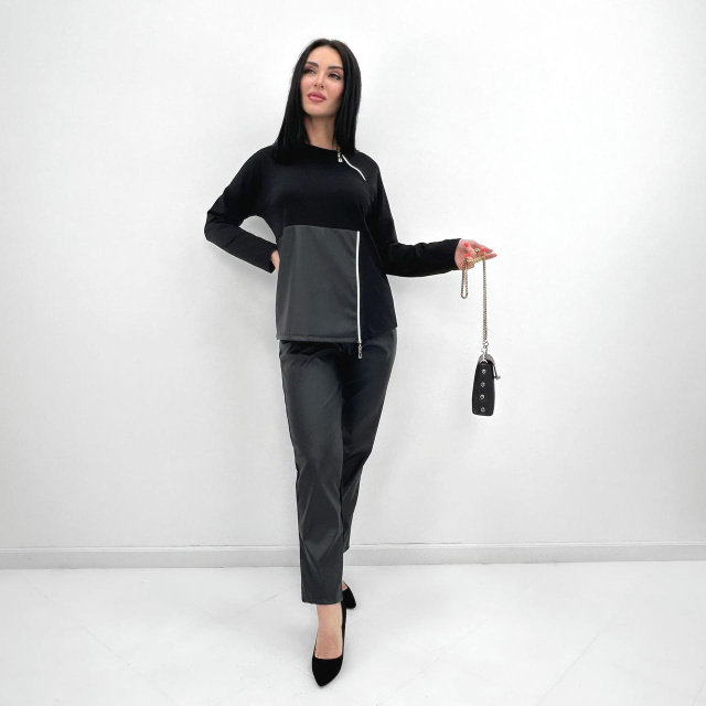 Жіночий костюм з екошкіри та двонитки "Skylar"