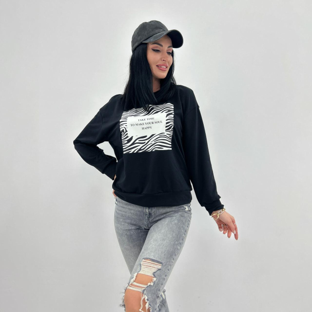 Жіночий світшот з анімалістичним принтом «Wild» оптом | Норма | Розпродаж моделі Чорний, 42-44