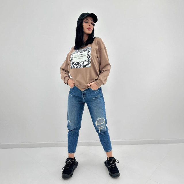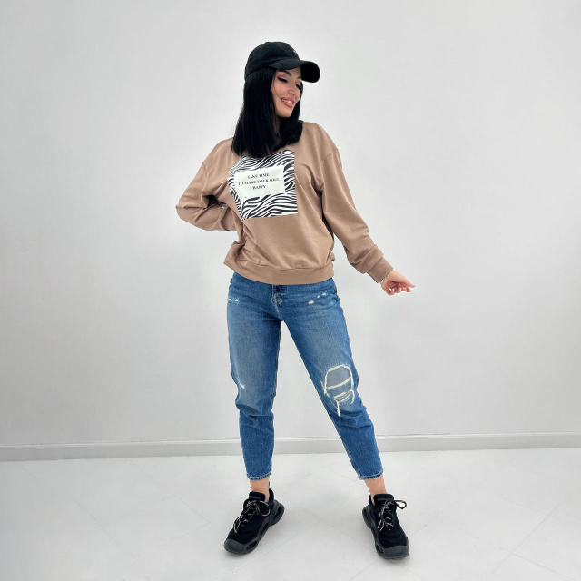 Жіночий світшот з анімалістичним принтом «Wild» оптом | Норма | Розпродаж моделі Капучіно, 46-48