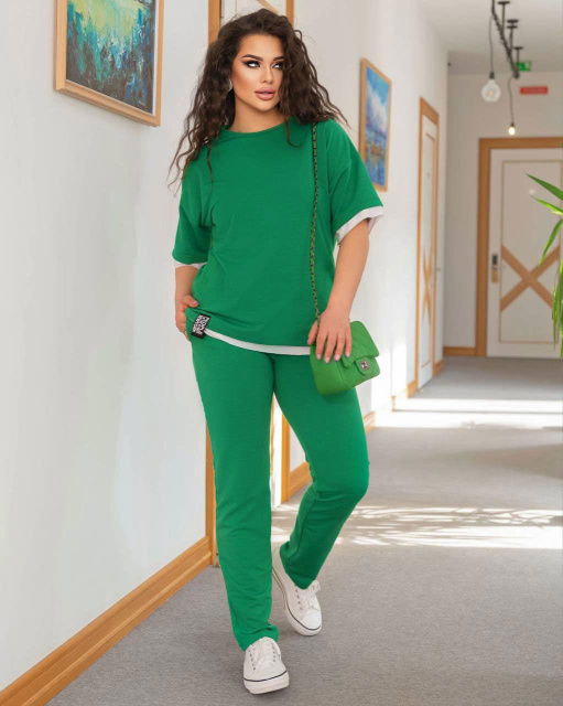 UA MarketВінницяGhjhgТовари та послугиСпортивные костюмы женские оптомЛітній трикотажний костюм-двійка «Summer» оптом | Норма і батал | Розпродаж моделі 54-56, Зелений