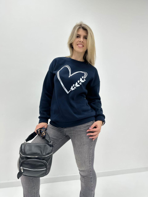 UA MarketВінницяGhjhgТовари та послугиКофты женские оптомУтеплений світшот з принтом «Heart» оптом | Норма і батал 54-56, Темно-синій