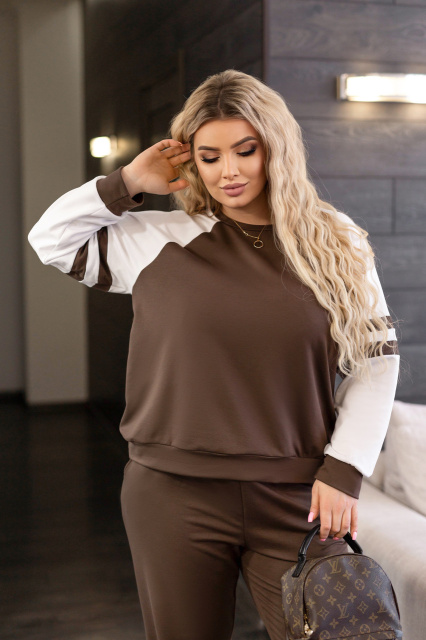 UA MarketВінницяGhjhgТовари та послугиСпортивные костюмы женские оптомПрогулянковий костюм у спортивному стилі «Marvin» | Норма і батал Шоколадний, 46-48