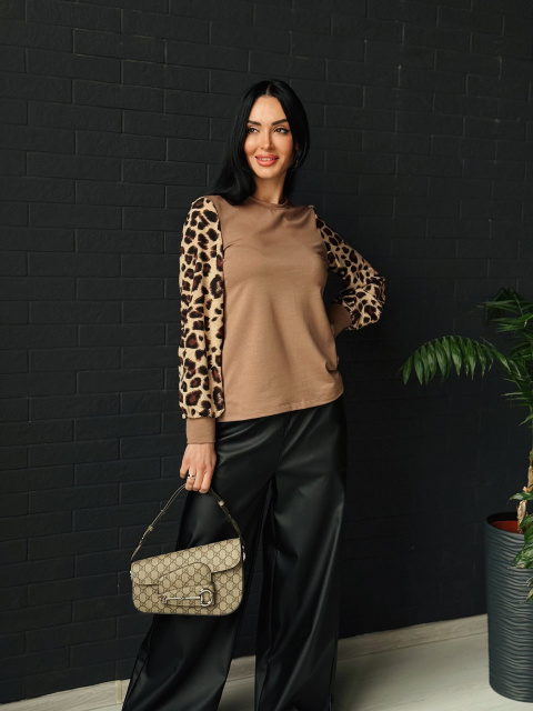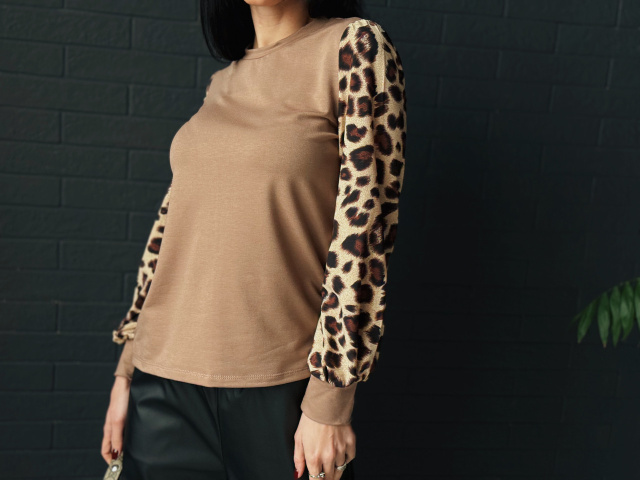 Жіноча кофтинка з леопардовими рукавами Роздріб (не дропшипінг) – 435 грн Ця стильна кофтинка з леопардовими рукавами – стильний акцент у вашому