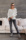 Кофта вільного силуету забезпечує комфорт і не сковує рухів. Неглибока кругла горловина виглядає стримано і гармонійно, а довгі рукави на манжетах доповнені розрізами з декоративними бантиками, що додає особливого шарму. Штани мають зручну посадку, пояс на м'якій резинці, місткі кишені та манжети внизу штанин для гарного прилягання.