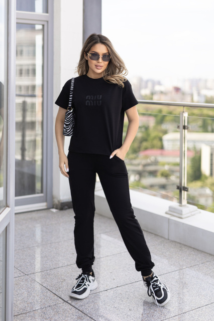 UA MarketВінницяGhjhgТовари та послугиСпортивные костюмы женские оптомСпортивний костюм з футболкою «Cover» | Норма і батал Чорний, 46-48