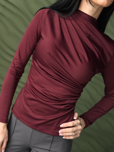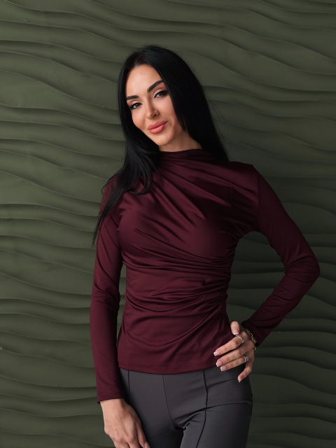 Базовий жіночий лонгслів з драпіруванням «Sweet» | Норма і батал Бордовий, 42-44
