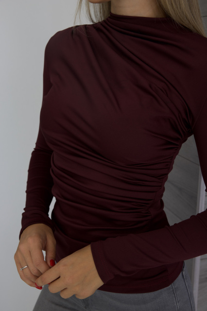 Базовий жіночий лонгслів з драпіруванням «Sweet» | Норма і батал Бордовий, 54-56