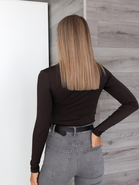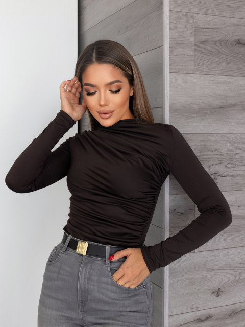 Базовий жіночий лонгслів з драпіруванням «Sweet» | Норма і батал Шоколадний, 42-44