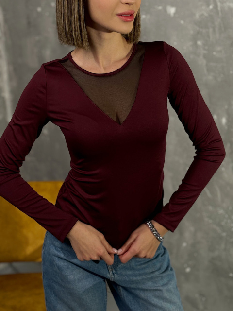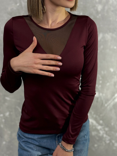 Жіноча кофтинка з декольте сітка «Annabel» | Норма і батал Бордовий, 42-44