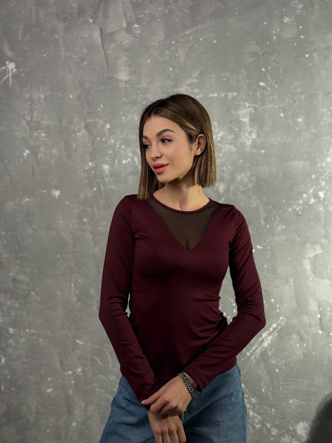 Жіноча кофтинка з декольте сітка «Annabel» | Норма і батал Бордовий, 50-52