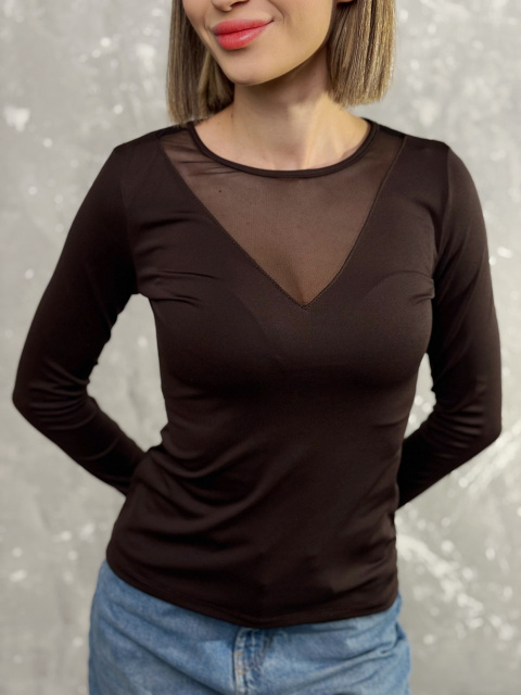 Жіноча кофтинка з декольте сітка «Annabel» | Норма і батал Шоколадний, 42-44