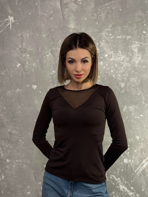 Жіноча кофтинка з декольте сітка «Annabel» | Норма і батал Шоколадний, 54-56
