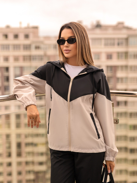 UA MarketВінницяGhjhgТовари та послугиСпортивные костюмы женские оптомСтильний жіночий костюм із плащової тканини «Wolf» | Норма та батал Чорний + бежевий, 50-52