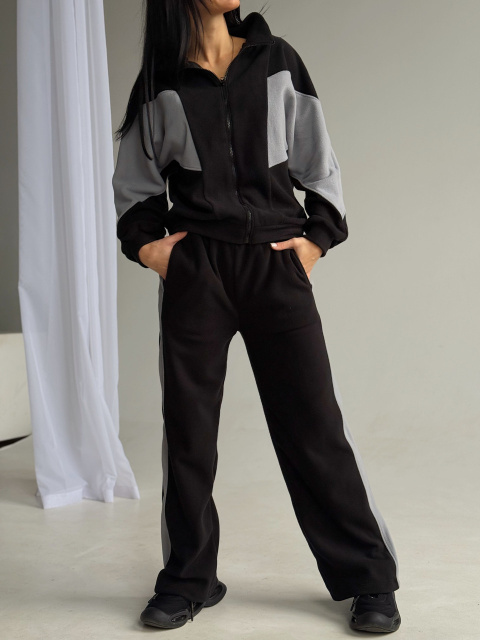 UA MarketВінницяGhjhgТовари та послугиСпортивные костюмы женские оптомСпортивний флісовий костюм «Connect» | Норма і батал | Розпродаж моделі| Чорний + сірий, 46-48