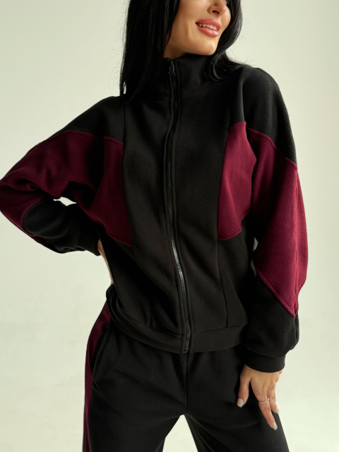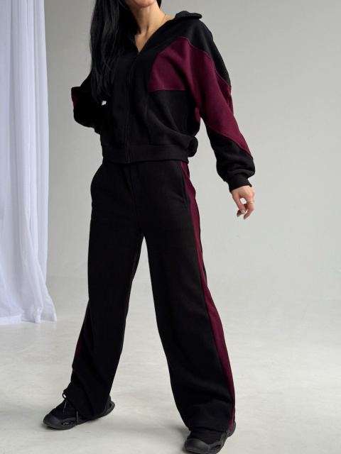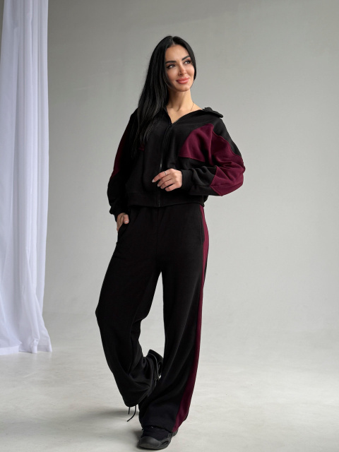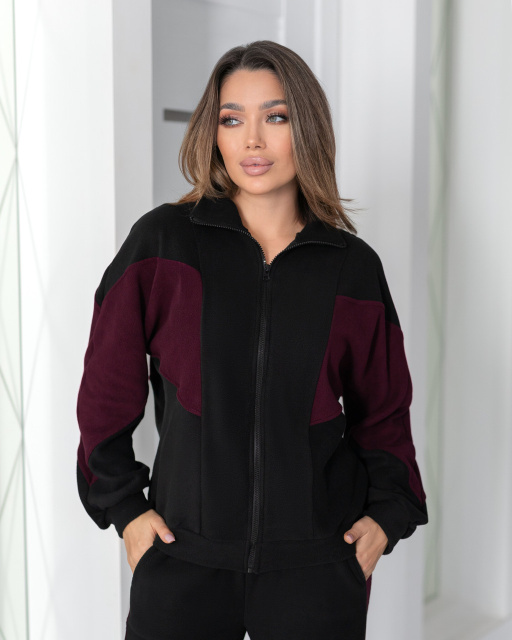 UA MarketВінницяGhjhgТовари та послугиСпортивные костюмы женские оптомСпортивний флісовий костюм «Connect» | Норма і батал | Розпродаж моделі| Черный+марсала, 50-52