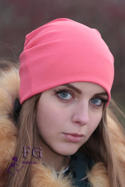 Жіноча шапка біні трикотажна кораловий