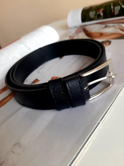 Лаконічний ремінь з екошкіри чорного кольору вдало впишеться в будь-який образ. За допомогою цього аксесуара можна вдало акцентувати увагу в області талії і вміло скорегувати силует.