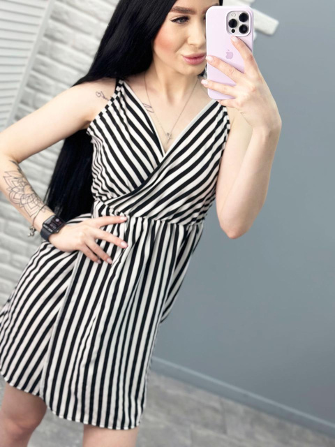 UA MarketВінницяGhjhgТовари та послугиСукні оптомЛітні плаття та сарафани оптомЛітня сукня-сарафан у смужку «Indiana» оптом | Норма і батал | Розпродаж моделі 42-44, Чорний