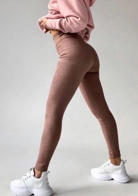 Для виготовлення базових жіночих лосин виробник використовував сучасний матеріал – замшу на основі дайвінгу. Матеріал щільний, пружний і трохи тягнеться. М'яка ворсиста текстура тканини приємна на дотик і дуже ефектно виглядає в поєднанні з іншими матеріалами.