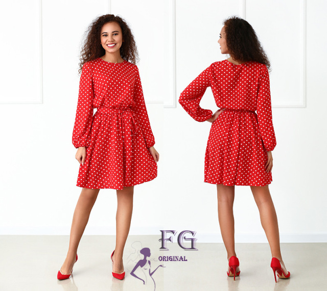 Плаття з довгими рукавами в горошок «Софі» оптом | Норма і батал| Розпродаж Червоний, 42-44