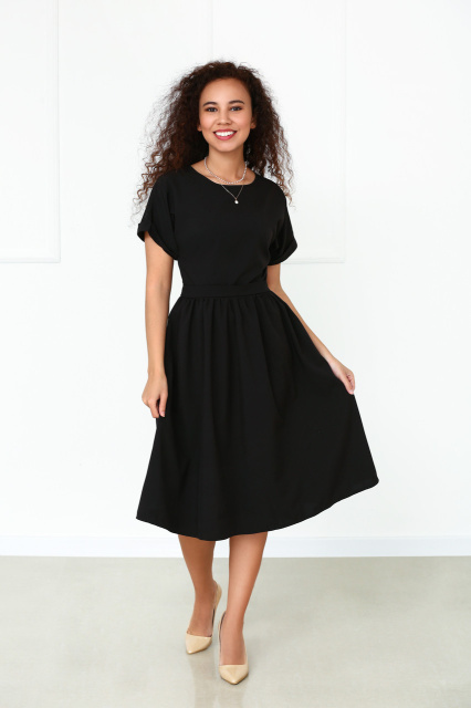 Якщо хочете бути в тренді і увійти в літній сезон на стилі, рекомендуємо придивитися до нашої новинкиі! Однотонне плаття міді з короткими рукавами – безпрограшний варіант для літнього сезону. Така модель виглядає однаково красиво як з модельним взуттям на підборах, так і зі спортивним взуттям на низькому ходу.