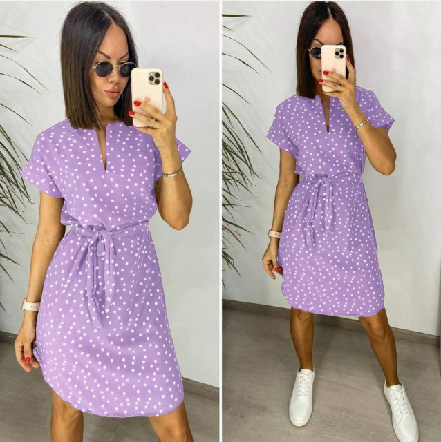 UA MarketВінницяGhjhgТовари та послугиСукні оптомЛітні плаття та сарафани оптомЛегке літнє плаття в горошок «Victoria» оптом | Розпродаж моделі Ліловий, 42-44