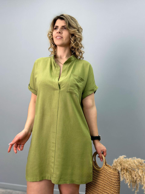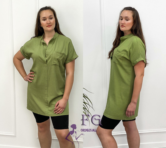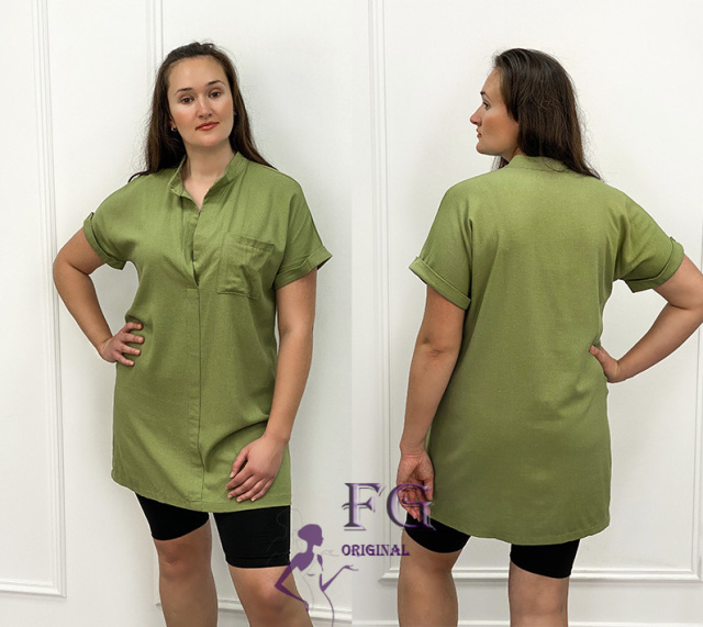 Жіноча лляна туніка великого розміру «Inga» оптом | Розпродаж моделі Хакі, 50-52
