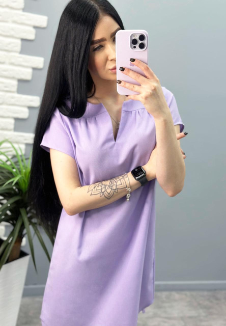 UA MarketВінницяGhjhgТовари та послугиСукні оптомЛітні плаття та сарафани оптомВільна літня сукня з льону «Penny» оптом I Розпродаж моделі Ліловий, 42-44