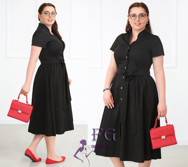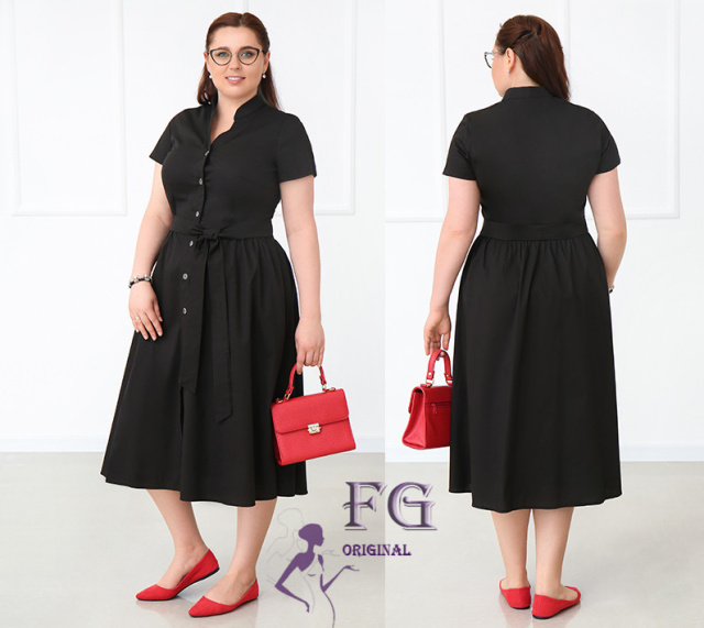 UA MarketВінницяGhjhgТовари та послугиЖіночий одяг батал (розмір 50+) оптомСукні батал оптомДовга котонова сукня на гудзиках «Lesley» оптом | Батал Чорний, 50-52