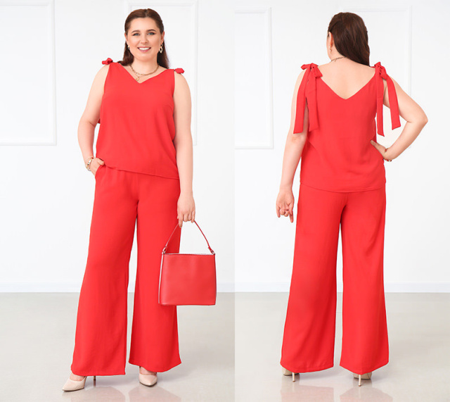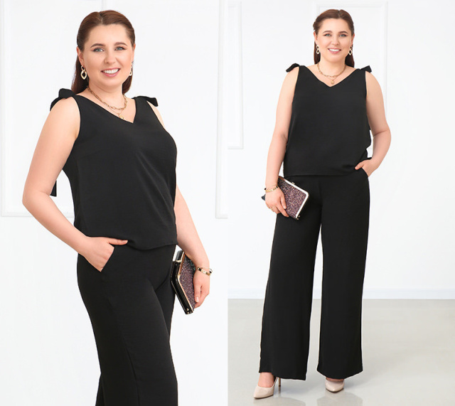 Прогулянковий літній костюм "Ясмін" Роздріб (не дропшиппинг) – 515 грн Також в наявності . Хочете оновити гардероб оптом і недорого? ТМ Fashion Girl – найкраще рішення. Ми гарантуємо відмінну якість наших виробів, доступні оптові/роздрібні ціни, а також гнучкі умови співпраці. Наша трендова новинка підкорить серце кожної жінки! Стильний літній костюм з широкими брюками доступний до замовлення в чотирьох модних кольорах. Дивно зручний і приємний до тіла комплект прикрасить жіночу фігуру і додасть образу чарівності. Модель складається з блузи прямого крою та широких штанів. Верх без рукавів – на плечах виріб зав'язується на кокетливі бантики. Плавильну посадку забезпечують виточки на грудях. Виріз має V-образну форму як спереду, так і ззаду. Низ комплекту – штани модного фасону палаццо. Вони мають високу посадку, пояс на резинці і дві кишені. Виготовлений літній костюм з американського крепу жниварки. Матеріал з дуже приємною текстурою – дарує шкірі відчуття легкої прохолоди навіть у найспекотніший день. Доглядати за одягом з жатки нескладно: рекомендуємо ручне або машинне прання при невисокій температурі води і без використання агресивних миючих засобів. Придбати костюм з широкими брюками можна в різних розмірах до 52-го – вибирайте свій з допомогою і тисніть на кнопку "Купити"! Ми гарантуємо швидкий сервіс і якість товару! Характеристики Стиль:Сasual Сезон:Літо Довжина кофти від плече (регулюється):58 см Довжина крокового шва: 82 см Довжина бічного шва: 109-110 см Матеріал:Американський креп жатка Наявність на складі Колір 50 52 Чорний ✗ ✓ Червоний ✗ ✓ Хакі ✓ ✓ Блакитний ✗ ✓ ✓ — в наявності (кількість обмежена). ✗ — немає в наявності (знято з виробництва). Наші переваги Весь товар в наявності Відправка за 24 години 100% як на фото Найвигідніші ціни Обмін та повернення Гарантія якості
