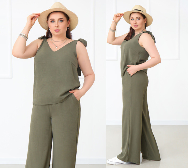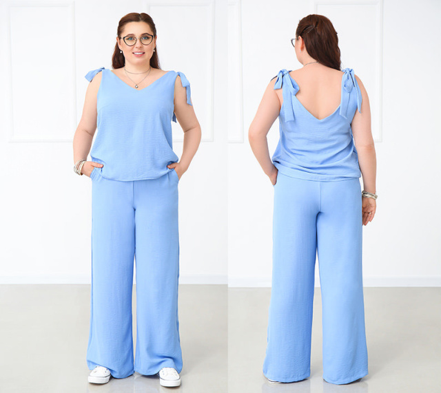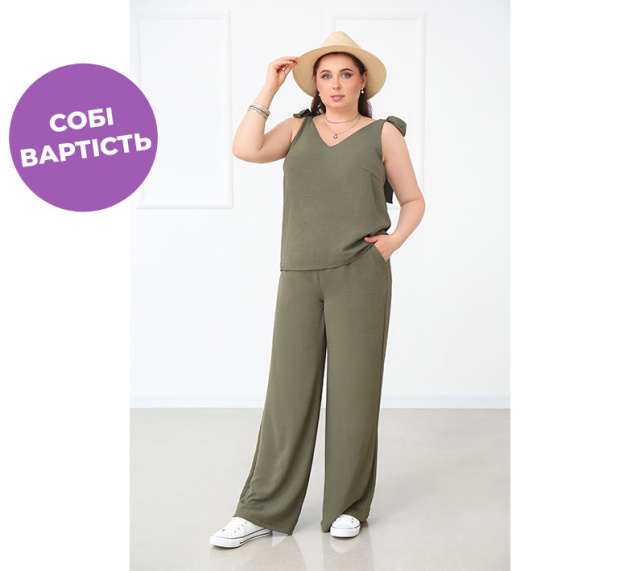 UA MarketВінницяGhjhgТовари та послугиЖіночий одяг батал (розмір 50+) оптомКостюми жіночі батал оптомЛітній жіночий костюм з широкими брюками «Ясмін» оптом | Батал | Розпродаж моделі