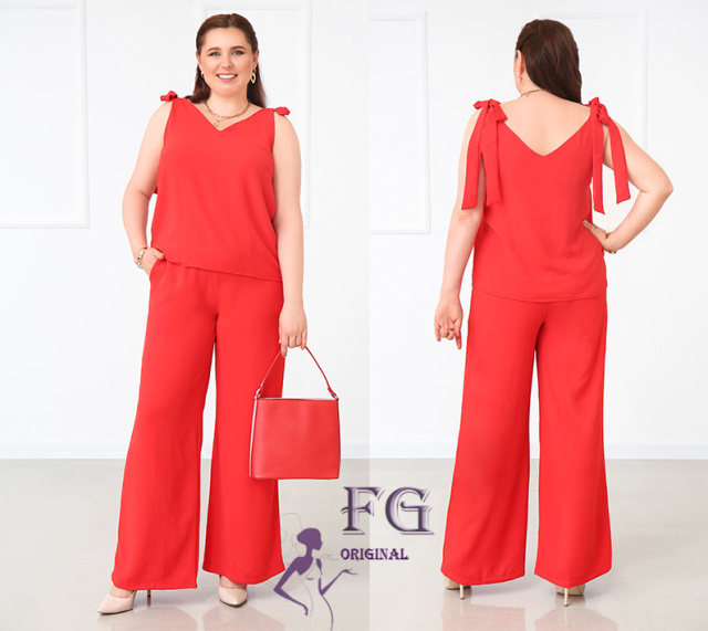 UA MarketВінницяGhjhgТовари та послугиЖіночий одяг батал (розмір 50+) оптомКостюми жіночі батал оптомЛітній жіночий костюм з широкими брюками «Ясмін» оптом | Батал | Розпродаж моделі Червоний, 52