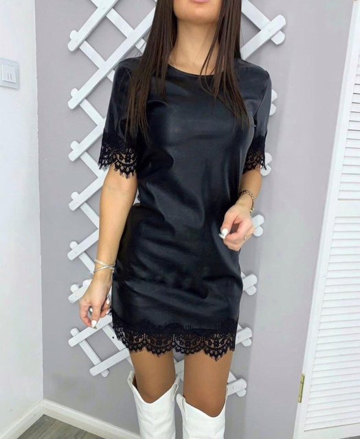 Незвичайне чорне плаття з екошкіри з мереживом стане хітом вашого гардеробу. Стильна модель з оригінального матеріалу чудово виглядає на стрункій фігурі, притягує погляди оточуючих і з легкістю створює небанальні луки.